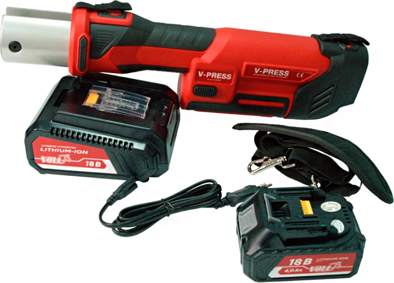 - Аккумуляторный гидравлический радиальный пресс-инструмент для обжима фитингов Voll V-Press