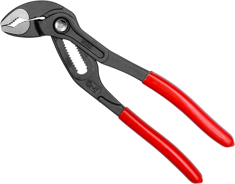 Клещи переставные с механизмом быстрой фиксации Voll Cobra 7 (175 мм), CrV (Волл Кобра 7 (175 мм), ЦрВ) предназначены для ремонта и монтажа трубопровода и сантехники, а также в других строительных работах, где необходимо зажимать предметы разного диаметра до 35 мм.