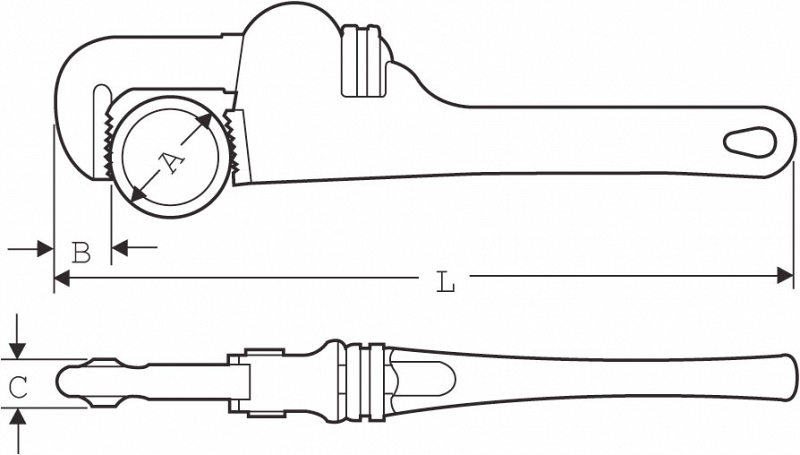 - На 40% легче аналогичного прямого трубного ключа, при этом исключительно долговечен