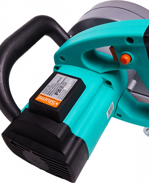 - Мощный 1600 Вт двигатель, высокопрочный редуктор и пара 150 мм дисков: способен уверенно осуществлять рез на глубину 5 – 40 мм